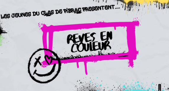 CLAS (31) Pibrac Rêve en couleurs Des élèves collaborent et réalisent une fresque sur le thème du rêve, sur un mur de la ville de Pibrac. Dans la vidéo, Vous pourrez voir des scènes entrecoupées de la création de la fresque, et d’interview de nos jeunes qui parlent de leur rêve, du monde qu’ils connaissent…